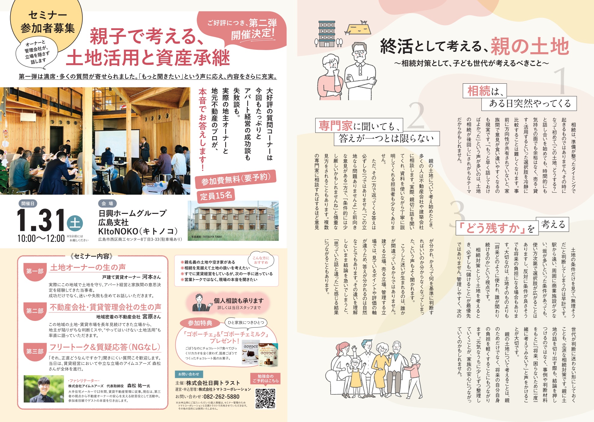 「家のことは親のこと。」と、これまで親世代の不動産に関与してこなかった次世代(承継者)の方々にも関心を持っていただける内容となっています。ぜひご参加ください。