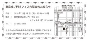 本年1月5日に開設した東京虎ノ門オフィスの内覧会を開催します。予約不要、入退場自由ですので、ご都合の良い時間にお立ち寄りください。