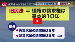 2020年3月31日放送の広島ホームテレビ「ココ+ぷらす」に代表/山下江が出演し、120年ぶりの民法改正について解説しました。 |