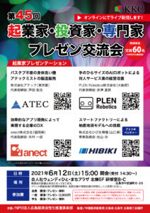代表/山下江が理事長を務める、NPO法人広島経済活性化倶楽部(KKC)主催の<第45回 起業家・投資家・専門家「プレゼン交流会」>が開催されます。 ■日時:2021年6月12日(土)15:00開会(受付14:30~) 【詳しく見る】 |