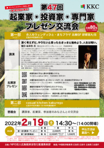 代表/山下江が理事長を務める、NPO法人広島経済活性化倶楽部(KKC)は、第47回 起業家・投資家・専門家「プレゼン交流会」を開催します。 ■日時:2022年2月19日(土)14:30開会(14:00開場) 【詳しく見る】 |