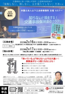 本セミナーでは、ほとんど知られていない二重基準のカラクリと、交通事故に遭ったとき頼るべきは保険会社ではなく弁護士である「理由」を解説します。受講無料で、どなたでもご参加頂けます。
