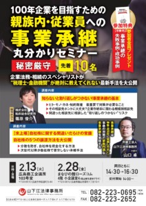 経営者様必見!「100年企業を目指すための親族内・従業員への事業承継丸わかりセミナー」開催