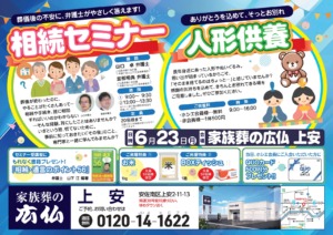 6月23日(月)9:00~16:00 家族葬の広仏 上安(安佐南区上安2-11-13)