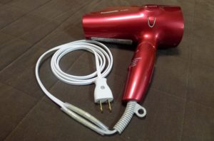 10年ほど前に購入したドライヤーのこと。コードの被覆が破れてしまい、使用中にショートするようになりました。